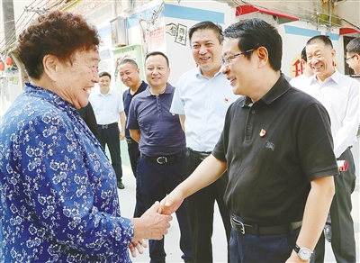 9月27日,市委書記蒿慧杰在源匯區(qū)團結(jié)路迎港巷調(diào)研并與居民親切交流。記者 王慶建 攝