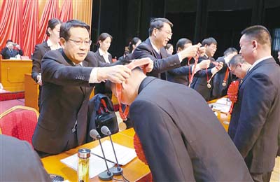 12月22日,市領(lǐng)導蒿慧杰、劉尚進等為受表彰的先進個人、先進集體和優(yōu)秀共產(chǎn)黨員、先進基層黨組織代表頒獎。記者 王慶建 攝