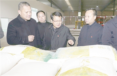 1月4日,市委書記蒿慧杰在經(jīng)濟(jì)技術(shù)開發(fā)區(qū)自嗨鍋面食生產(chǎn)基地調(diào)研。記者 王慶建 攝
