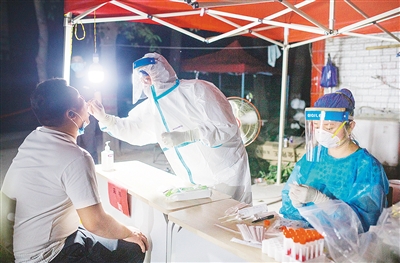 8月7日下午,在海河小區(qū)核酸檢測采樣點,眾多居民在志愿者的引導下佩戴口罩、保持距離,井然有序地進行信息登記等采樣流程。