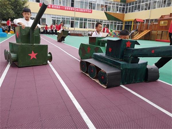 活動(dòng)伊始,老師們帶來(lái)了精彩的舞蹈節(jié)目—《中國(guó)范兒》。精神醒目的紅色舞衣,整齊劃一的鼓舞動(dòng)作,聲聲震撼的鼓點(diǎn)敲擊,老師們像精靈般舞動(dòng)著,在花鼓上演繹出振奮人心的樂(lè)章;歌伴舞《我和我的祖國(guó)》,老師們用歌聲向祖國(guó)深情告白,唱出了對(duì)祖國(guó)的拳拳赤子之心。中班組小朋友精神飽滿,他們開(kāi)著自制坦克、飛機(jī)、軍艦,喊著響亮口號(hào),用陽(yáng)光自信、朝氣蓬勃的氣勢(shì)展現(xiàn)著愛(ài)祖國(guó)的決心。