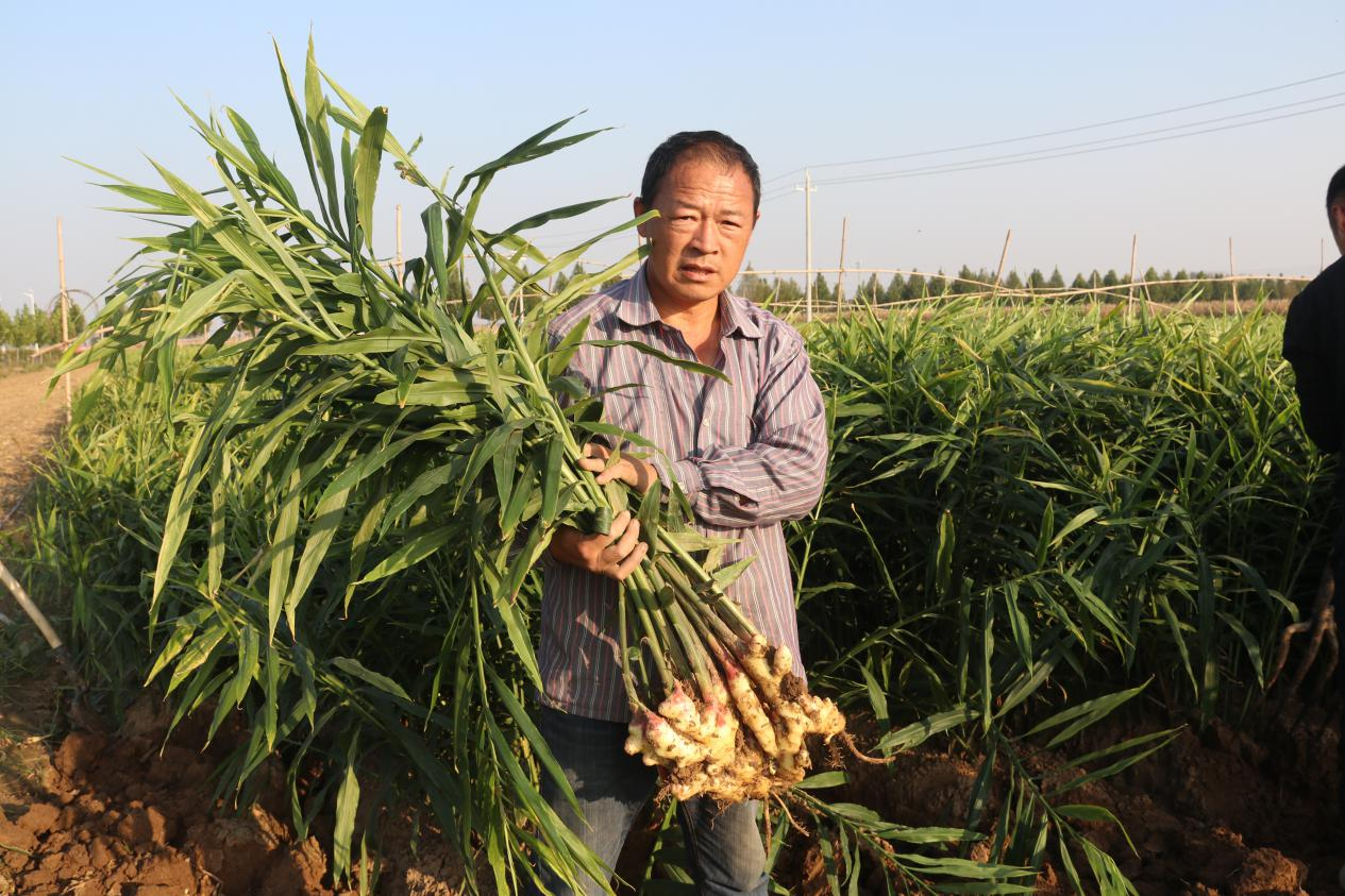 河南省臨潁縣王孟鎮(zhèn)王孟東村農(nóng)民孟俊宏、張穎超、趙東建,在王孟鎮(zhèn)政府門(mén)前東西大道路南,今年從山東引種了20多畝無(wú)公害大姜,經(jīng)過(guò)半年多來(lái)的精心管理喜獲大豐收,目前,長(zhǎng)勢(shì)喜人,豐收在望,預(yù)計(jì)畝產(chǎn)在2萬(wàn)斤,畝均收入在40000元,依靠種植無(wú)公害大姜走上了致富之路。