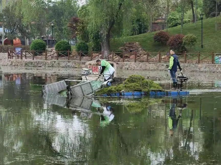 科學(xué)管養(yǎng):為荷花生長鋪就溫床。目前,人民公園荷塘里,千瓣蓮、黃千層、仙女散花等多個(gè)品種靜待萌發(fā)。為守護(hù)這份美麗,園林養(yǎng)護(hù)人員從初春便開啟"定制化"呵護(hù)。每年3月,在荷葉未萌發(fā)前,養(yǎng)護(hù)人員運(yùn)用機(jī)械船已開始定期清理水草,配合自主研發(fā)的輕便型打撈工具,既能精準(zhǔn)清除水下纏繞的雜草,又不傷及荷花根系,為新荷萌發(fā)預(yù)留充足空間。