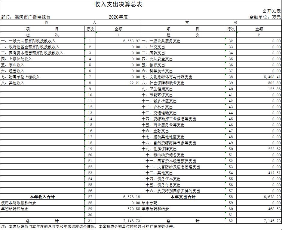 2020年度收、支總計均為7146.73萬元。與上年度相比,收、支總計各減少500.21萬元,下降6.54%。主要原因是廣告收入下降;機構(gòu)改革,人員減少。