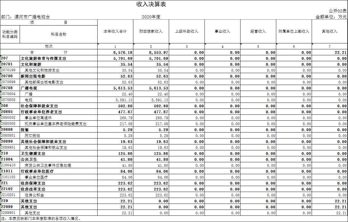 2020年度收入合計6576.18萬元,其中:財政撥款收入6553.97萬元,占99.66%;其他收入22.21萬元,占0.34%。