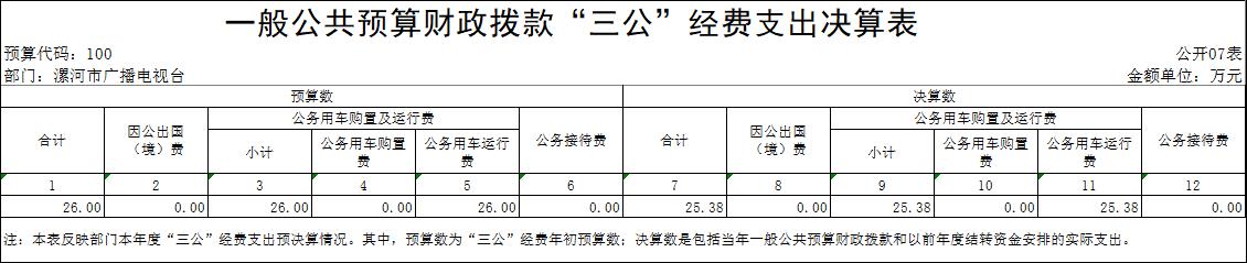 十、“三公”經(jīng)費:納入同級財政預(yù)決算管理“三公”經(jīng)費,指單位使用財政撥款安排的因公出國(境)費、公務(wù)用車購置及運行費和公務(wù)接待費。其中,因公出國(境)費反映單位公務(wù)出國(境)的國際旅費、國外城市間交通費、住宿費、伙食費、培訓(xùn)費、公雜費等支出;公務(wù)用車購置及運行費反映反映單位公務(wù)用車車輛購置支出(含車輛購置稅)及租用費、燃料費、維修費、過路過橋費、保險費、安全獎勵費用等支出;公務(wù)接待費反映單位按規(guī)定開支的各類公務(wù)接待(含外賓接待)支出。