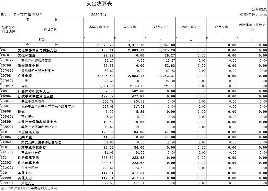2020年度財政撥款收、支總計均為6648.42萬元。與上年度相比,財政撥款收、支總計各減少997.73萬元,下降13.05%。主要原因是廣告收入下降;機構(gòu)改革,人員減少。
