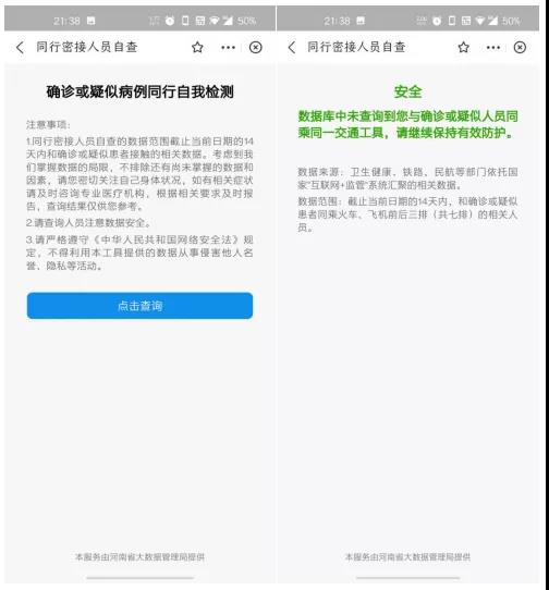 為了降低傳播風(fēng)險,“豫事辦”針對疫情防控工作,推出了 疫情動態(tài)、患者同行查詢(快速查詢新冠肺炎確診患者同行程交通班次、到訪過的公共場所)、 同行密接人員自查(查詢是否與確診患者、疑似患者密切接觸,做好隔離工作)等功能,該功能數(shù)據(jù)由 國家衛(wèi)健委、鐵路、民航等部門提供,每日實時更新。