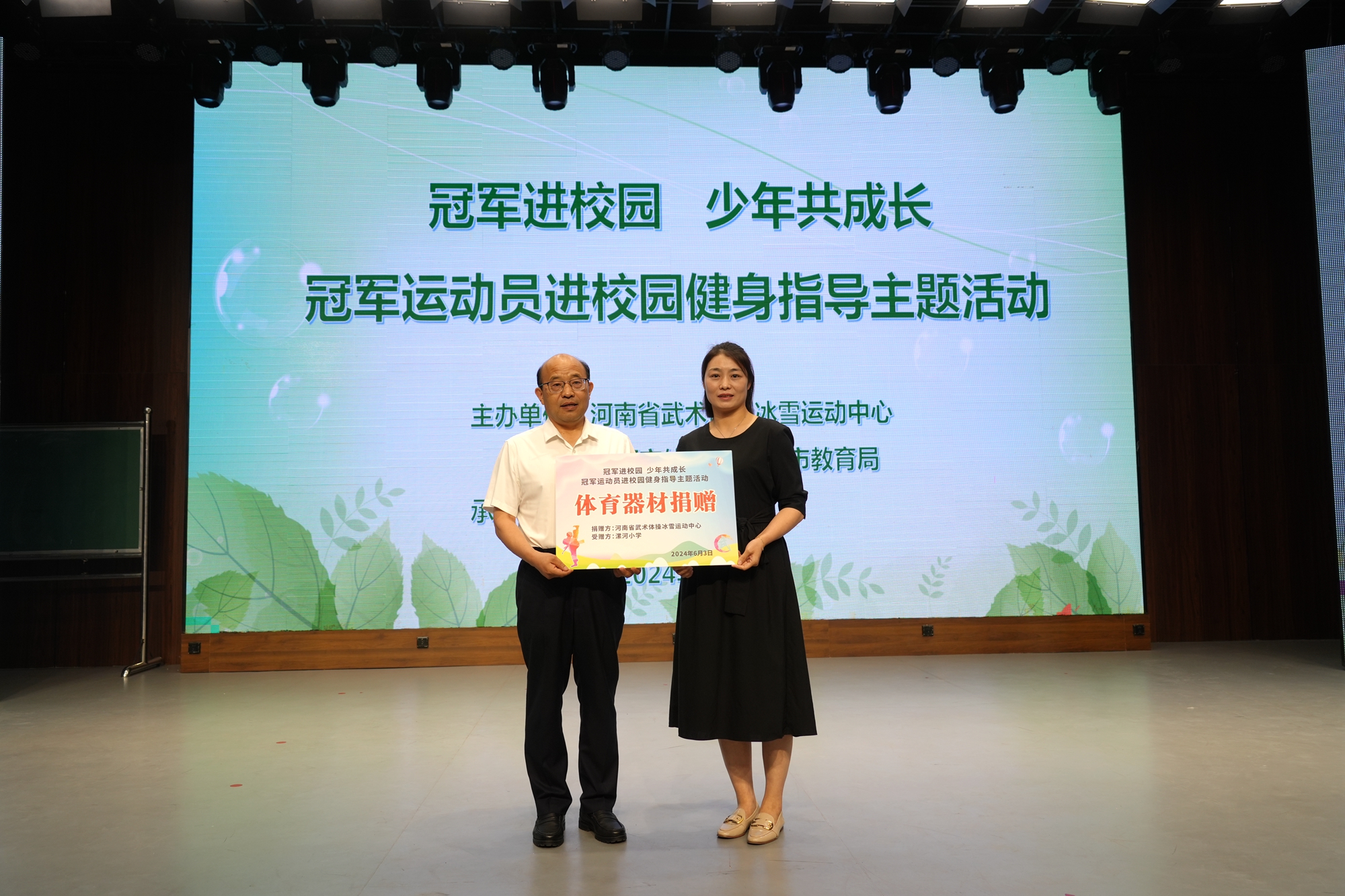 活動現(xiàn)場,河南省武術體操冰雪運動中心及漯河市體育局向學校贈送了籃球,以此表達對學校體育工作的支持和關心。隨后,孔洪星、申國順兩位冠軍在熱烈的掌聲和歡呼聲中走上舞臺,他們深情回顧了自己在武術散打道路上的奮斗歷程,分享了那些充滿挑戰(zhàn)和汗水的故事。這些真實而感人的經歷深深觸動了在場的每一位師生,讓大家更加深刻地理解了冠軍榮耀背后的艱辛付出和頑強拼搏的精神。