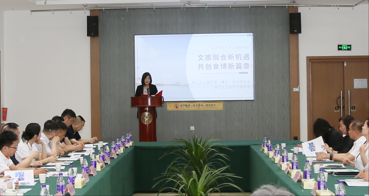 齊琳同志圍繞源匯區(qū)文旅產(chǎn)業(yè)發(fā)展現(xiàn)狀及優(yōu)勢(shì)作了專題宣傳推介,簡(jiǎn)要介紹近年來(lái)源匯區(qū)堅(jiān)持“文化點(diǎn)亮城市、產(chǎn)業(yè)彰顯特色、創(chuàng)新引領(lǐng)未來(lái)”發(fā)展理念,立足“文商旅創(chuàng)融合中心區(qū)”發(fā)展定位,高起點(diǎn)站位、高標(biāo)準(zhǔn)謀劃、高質(zhì)量推進(jìn),做好文旅文創(chuàng)融合文章,積極培育文旅文創(chuàng)消費(fèi)新業(yè)態(tài)新場(chǎng)景,全力推動(dòng)文旅產(chǎn)業(yè)鏈項(xiàng)目建設(shè),走出一條以文化人、以文興業(yè)的新路子。最后表示將以此次食博盛會(huì)為契機(jī),以文旅融合為抓手,以食品文化為貫穿,依托轄區(qū)河上街景區(qū)和漯灣古鎮(zhèn)超高人氣和特色資源優(yōu)勢(shì),持續(xù)豐富旅游產(chǎn)品和旅游供給,激發(fā)消費(fèi)潛力,提升文化能級(jí),擦亮文商旅創(chuàng)融合新名片,傾力將源匯區(qū)打造成“在者舒心、來(lái)者傾心、聞?wù)邉?dòng)心”的全國(guó)知名文化旅游目的地。